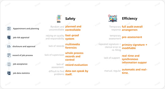 Permit-to-work management is a major measure of safe construction management in plants. Operation permit management is implemented for operations with obvious risks, work procedures and control guidelines are clarified, safety briefing and safety education are provided to construction personnel, and the operation process is supervised to ensure safe production. The traditional operation management link of chemical enterprises generally suffers from difficulties in landing safety standards, poor quality of personnel and inefficient approval: