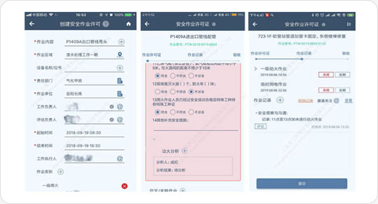 The In-Road E-Permit system is embedded with the Safety Specification for Special Operation of Chemical Producers (GB30871-2014), has integrated advanced management experience of the industry, combined the traditional paper job application form, special job permit and safety disclosure form into a set of process through process optimization, and realized online application, planning, assignment, job evaluation, approval, safety disclosure, record of job process and acceptance of 8 special job slips for chemical producers. It has realized the digitization, visualization and standardization of the whole operations of job management, significantly improved the level of safety management and the efficiency of job approval, and been widely applied to all kinds of chemical producers.